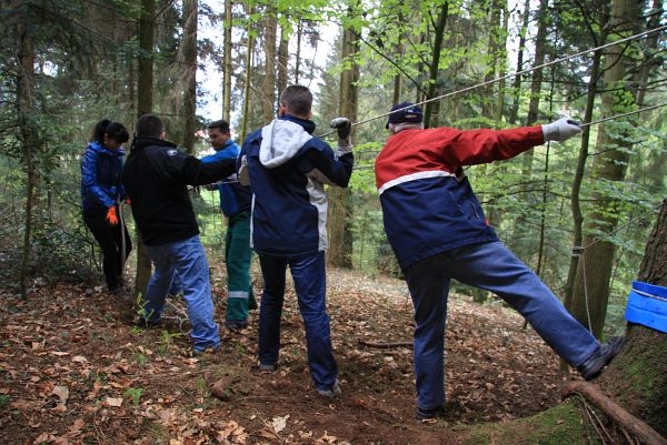 Der Bau einer Seilbrücke ist ein spannendes, komplexes und herausforderndes Projekt, das die Mitarbeit jedes einzelnen Teammitglieds erfordert. Die Aufgabe besteht darin, eine Brücke über einen Bach, einen kleinen Fluss oder einen Graben zu bauen. Das Seilbrückenbauen stellt eine reale Herausforderung dar, welche nur mit Kooperation, Kommunikation und Teamgeist gelöst werden kann. So müssen ohne verfügbare "Bauanleitung" geeignete Bäume gefunden, Ankerpunkte eingerichtet und Spannsysteme für die Trageseile entwickelt werden. Höhepunkt der Veranstaltung ist die gemeinsame „Erprobung“ der Seilbrücke auf ihre Belastbarkeit.